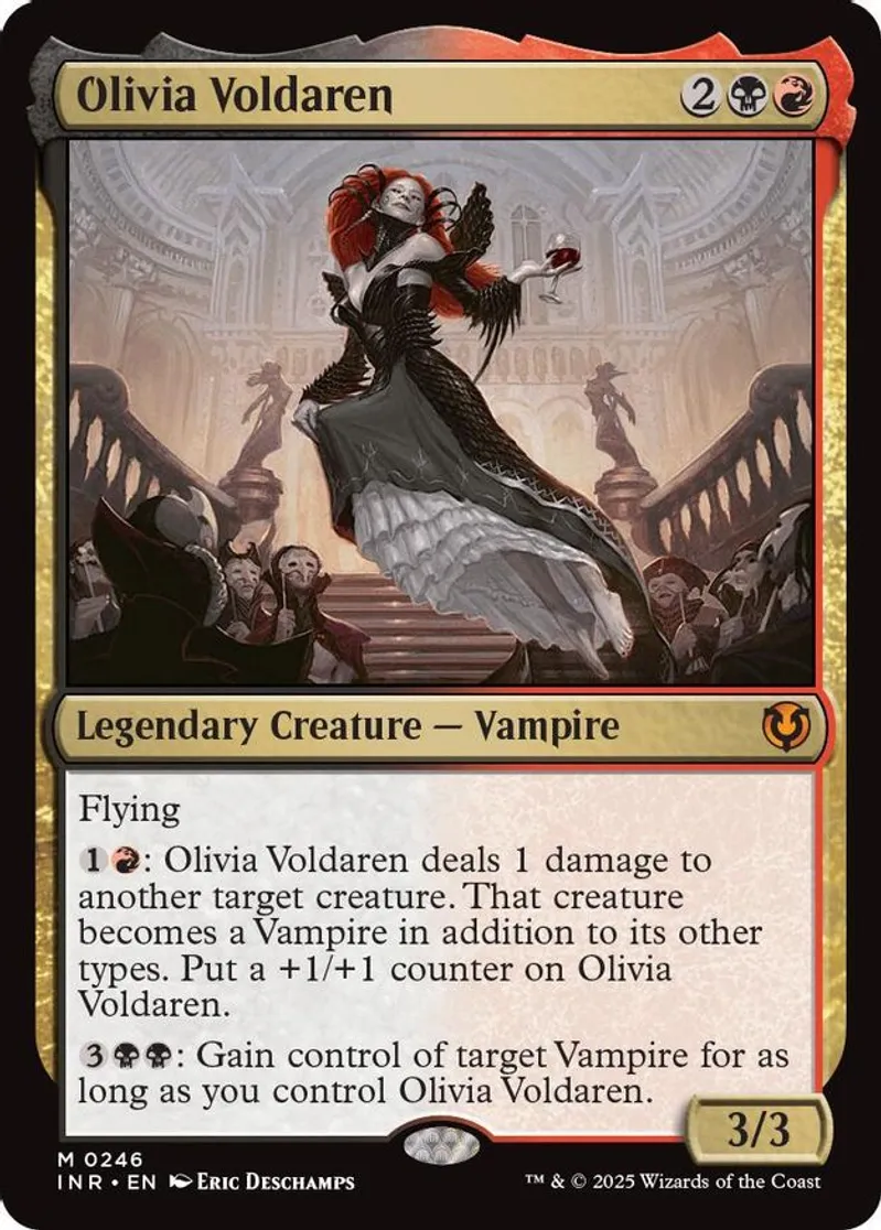 Magic: the Gathering (mtg) Mythic Rare legendary creature — vampire Olivia Voldaren from Innistrad Remastered (INR) last updated 2026-02-25 14:21:32