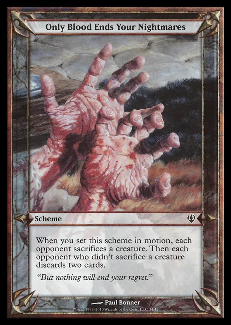 Magic: the Gathering (mtg) Common Scheme Only Blood Ends Your Nightmares from Oversize Cards (pOVR) last updated 2026-02-25 15:09:36