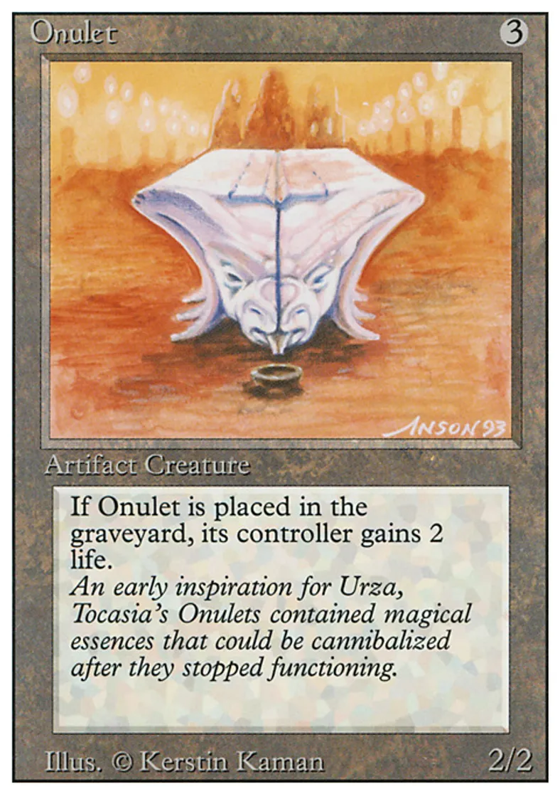 | Flavor Text | An early inspiration for Urza, Tocasia's Onulets contained magical essences that could be cannibalized after they stopped functioning. | ||