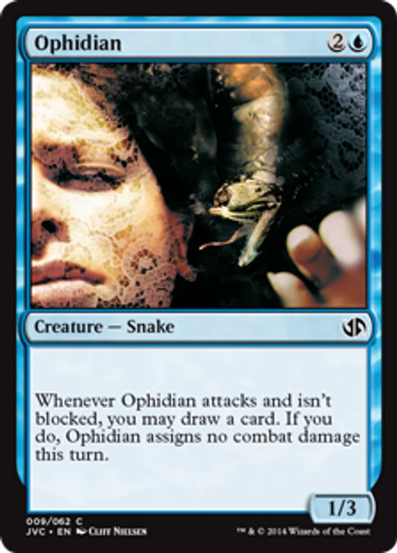 | Oracle Text | Whenever Ophidian attacks and isn't blocked, you may draw a card. If you do, Ophidian assigns no combat damage this turn. | ||