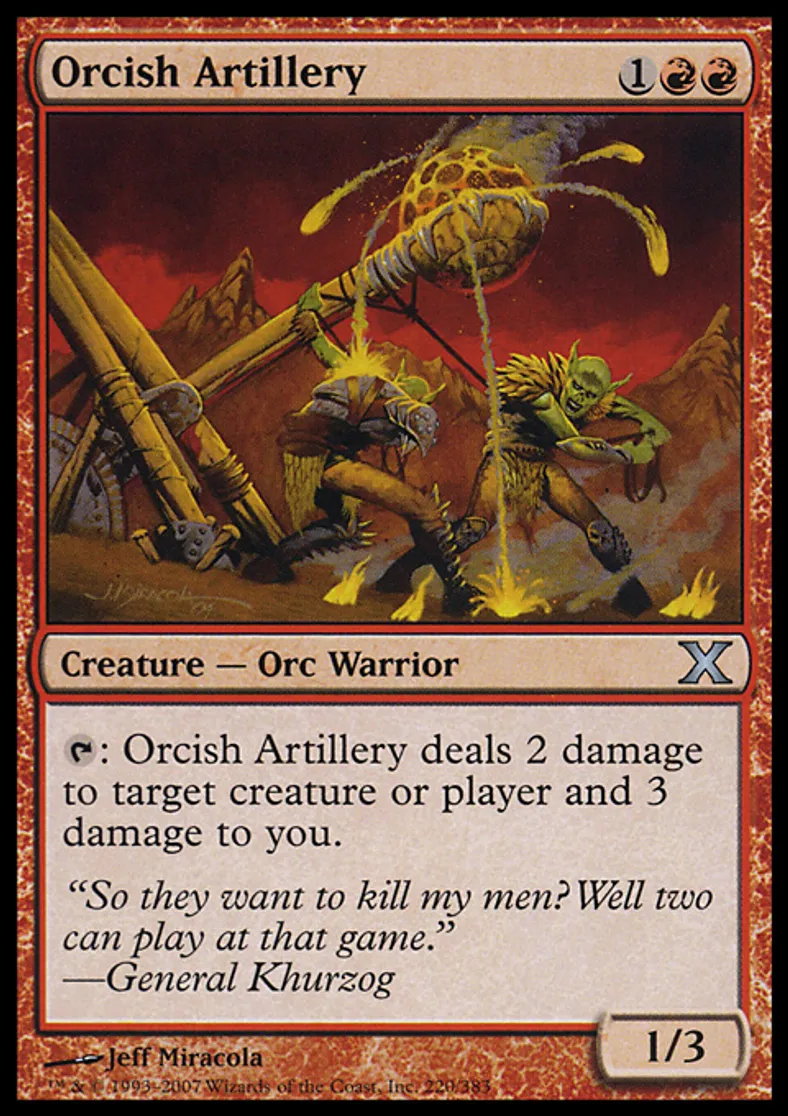 Orcish Artillery is a Uncommon in the set Tenth Edition.
