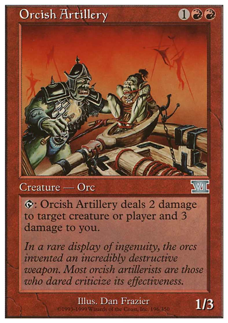 Orcish Artillery is a Uncommon in the set Classic Sixth Edition.