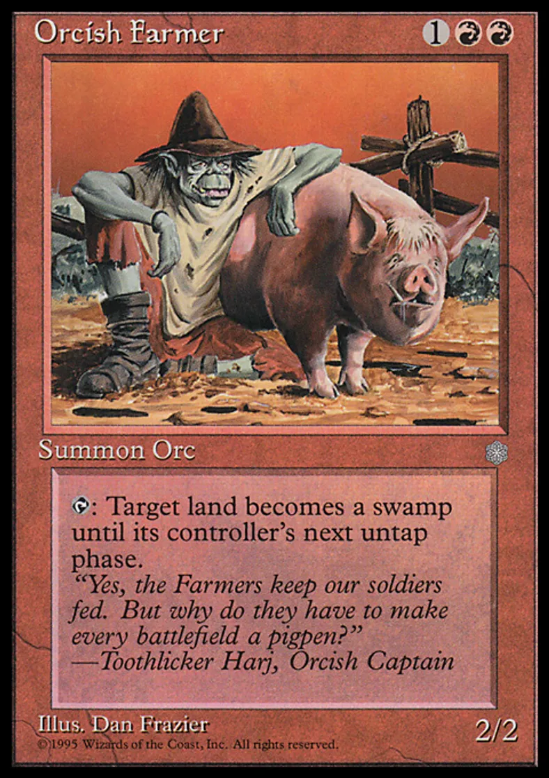 | Flavor Text | "Yes, the Farmers keep our soldiers fed. But why do they have to make every battlefield a pigpen?"—Toothlicker Harj, Orcish Captain | ||