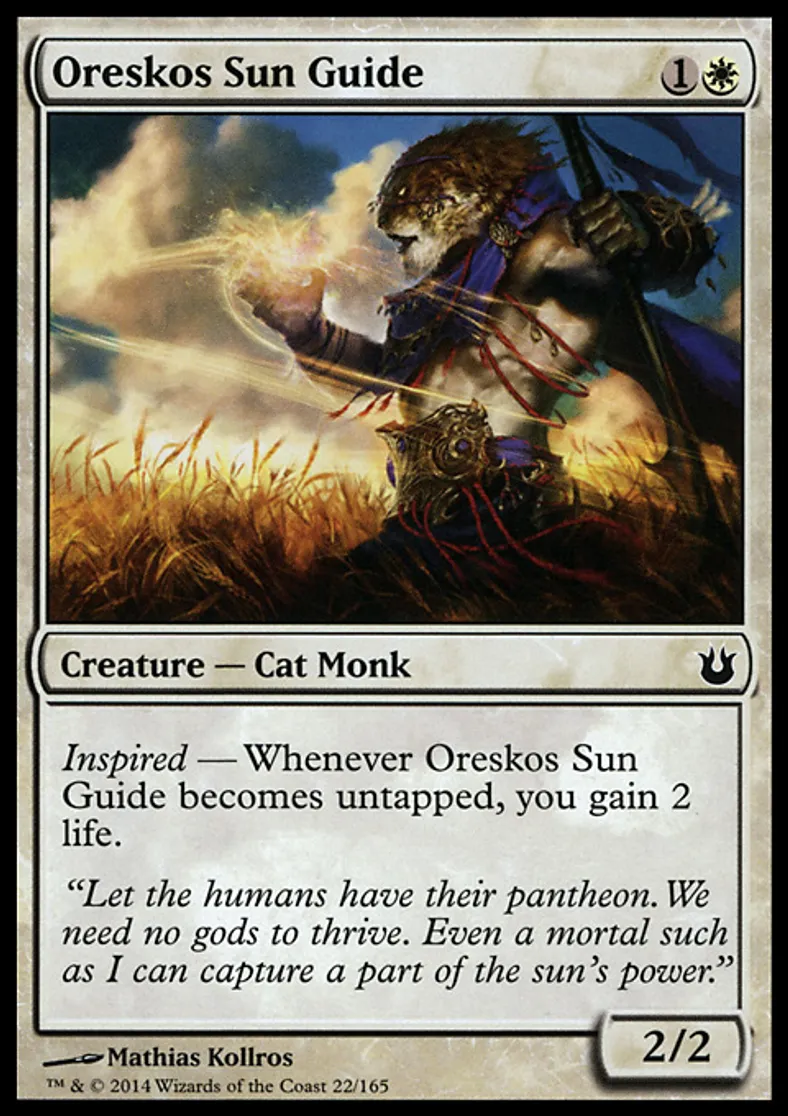 | Oracle Text | Inspired — Whenever Oreskos Sun Guide becomes untapped, you gain 2 life. | ||