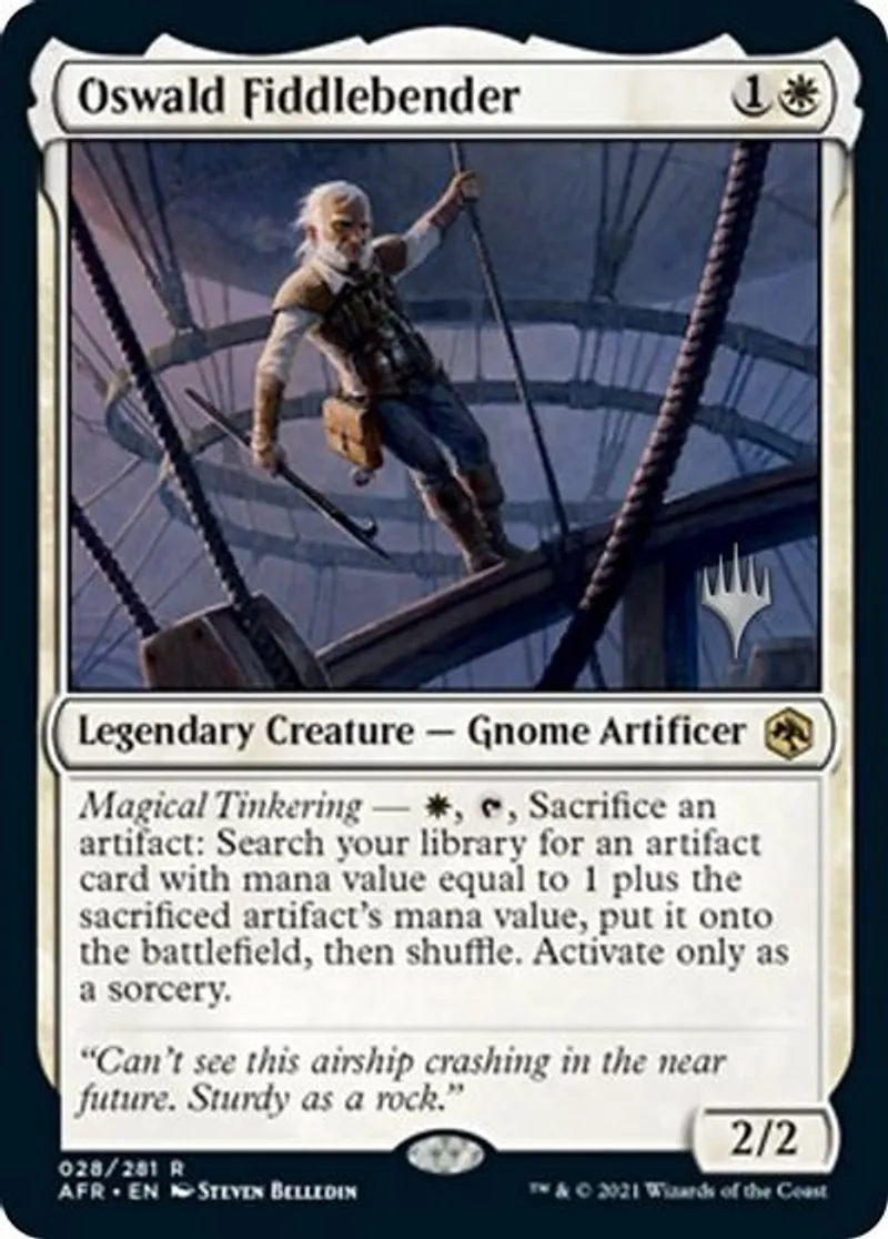 Magic: the Gathering (mtg) Rare Legendary Creature - Gnome Artificer Oswald Fiddlebender from Promo Pack: Adventures in the Forgotten Realms (pAFR) last updated 2026-02-24 15:33:32