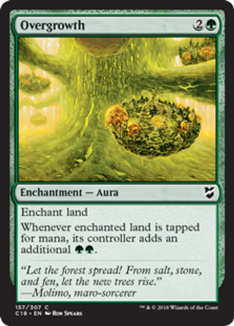 Magic: the Gathering (mtg) Common Enchantment - Aura Overgrowth from Commander 2018 (C18) last updated 2026-02-19 16:07:32