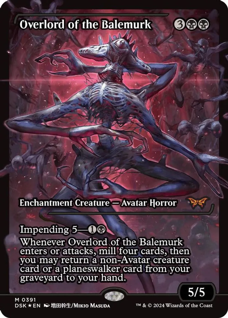 Magic: the Gathering (mtg) Mythic Rare enchantment creature — avatar horror Overlord of the Balemurk from Duskmourn: House of Horror (DSK) last updated 2026-04-02 15:20:35