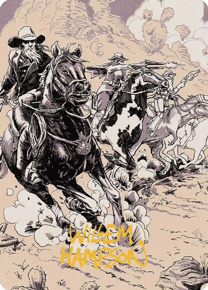Overwhelming Forces Art Card (Gold-Stamped Signature) is a s in the set Art Series: Outlaws of Thunder Junction.