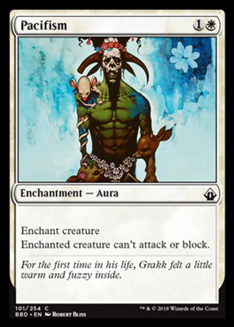 Magic: the Gathering (mtg) Common Enchantment - Aura Pacifism from Battlebond (BBD) last updated 2026-02-21 16:52:06