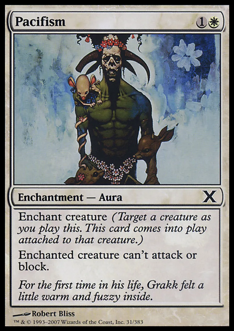 Magic: the Gathering (mtg) Common Enchantment - Aura Pacifism from Tenth Edition (10E) last updated 2026-02-07 17:44:32