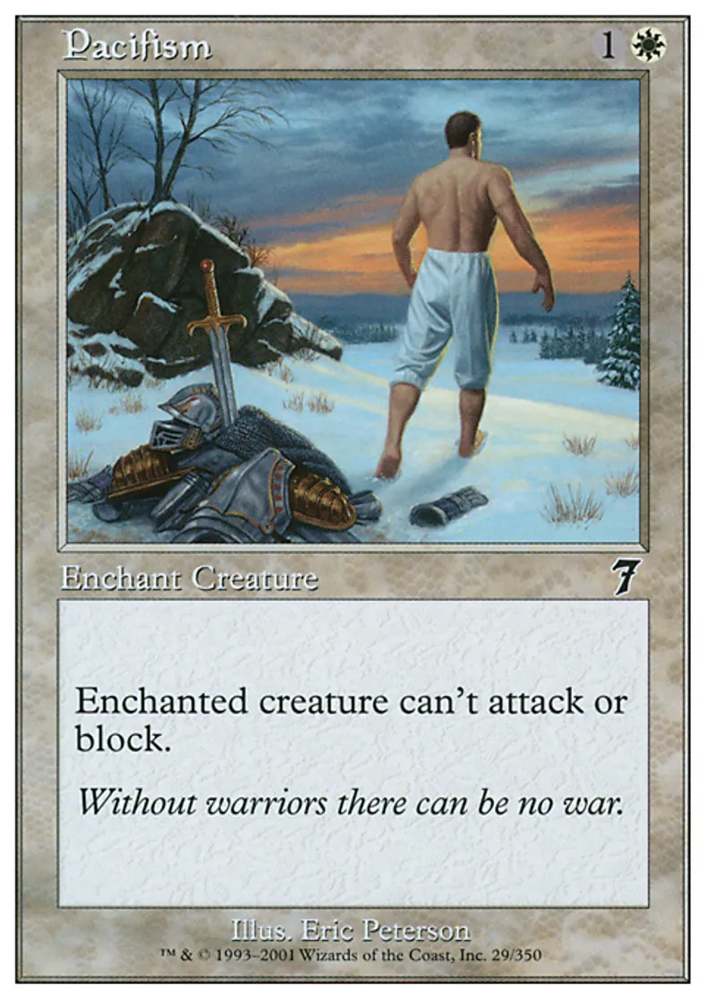 Magic: the Gathering (mtg) Common Enchantment - Aura Pacifism from Seventh Edition (7ED) last updated 2026-02-11 14:44:37