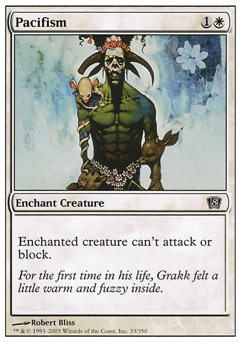 Magic: the Gathering (mtg) Common Enchantment - Aura Pacifism from Eighth Edition (8ED) last updated 2026-02-07 17:39:02