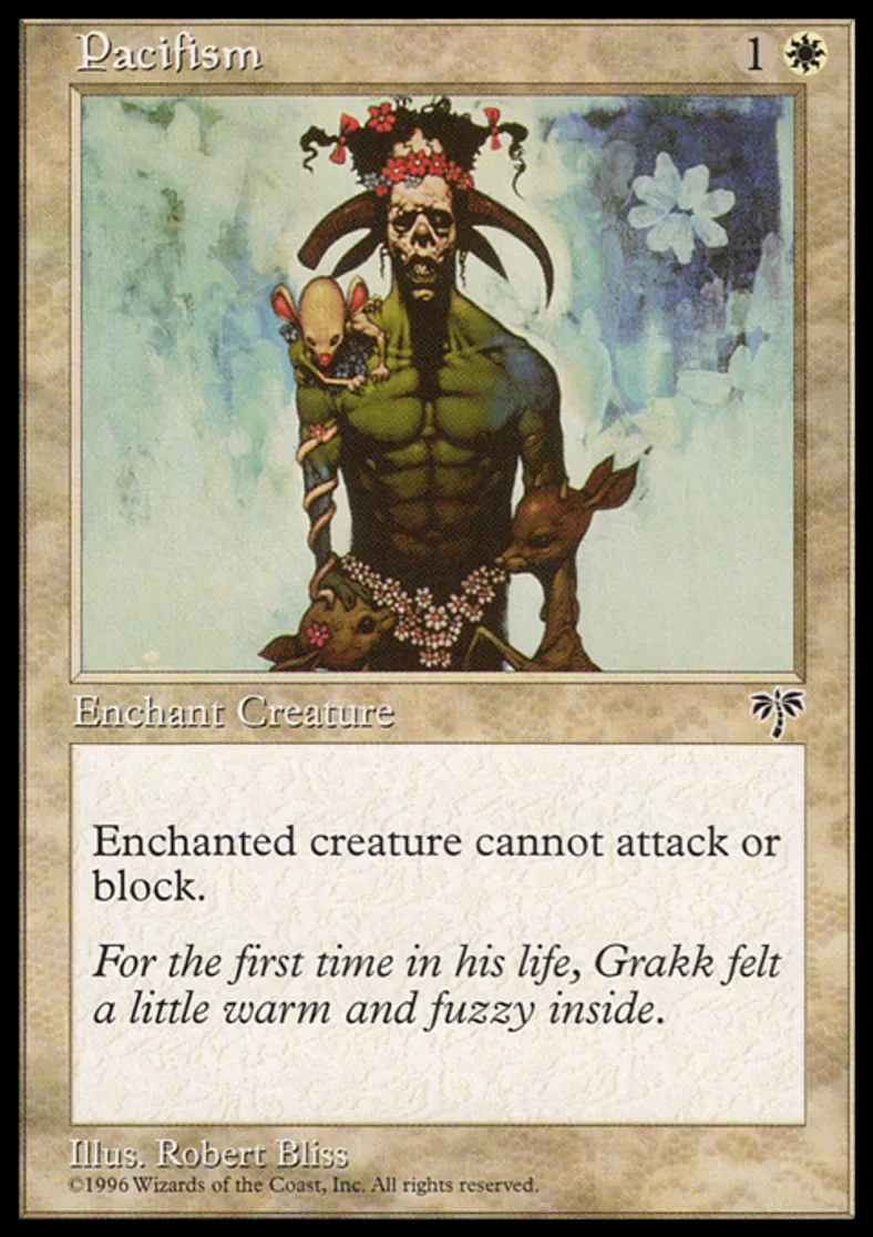 Magic: the Gathering (mtg) Common Enchantment - Aura Pacifism from Mirage (MIR) last updated 2026-02-07 17:12:32