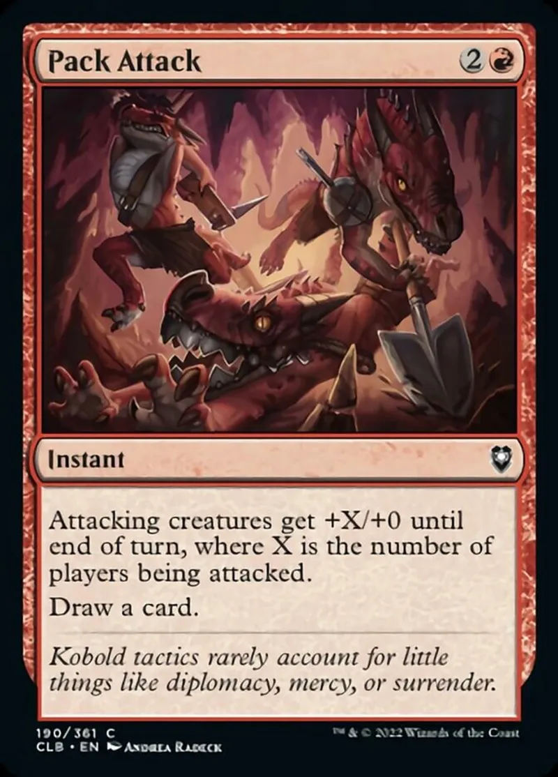 Pack Attack is a common in the set Commander Legends: Battle for Baldur's Gate.