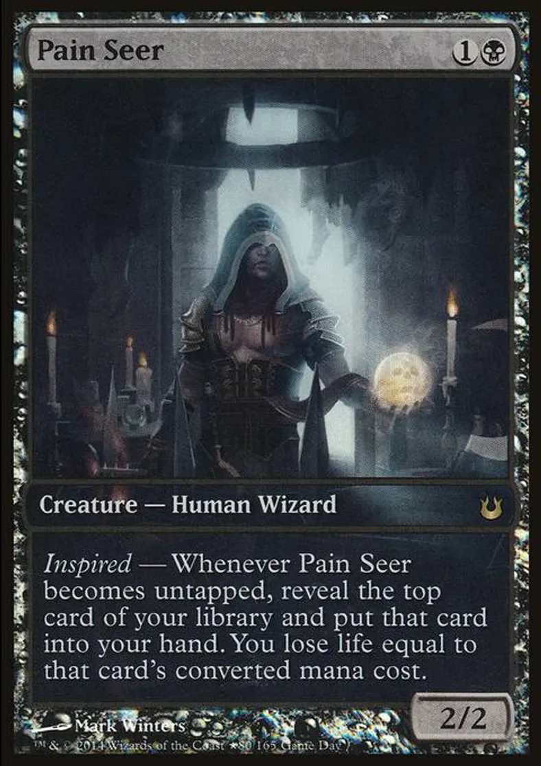 | Oracle Text | Inspired — Whenever Pain Seer becomes untapped, reveal the top card of your library and put that card into your hand. You lose life equal to that card's converted mana cost. | ||