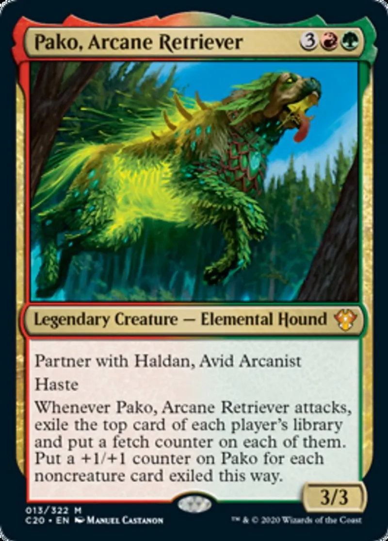 Magic: the Gathering (mtg) Mythic Rare Legendary Creature — Elemental Hound Pako, Arcane Retriever from Commander 2020 (C20) last updated 2026-02-24 15:27:32