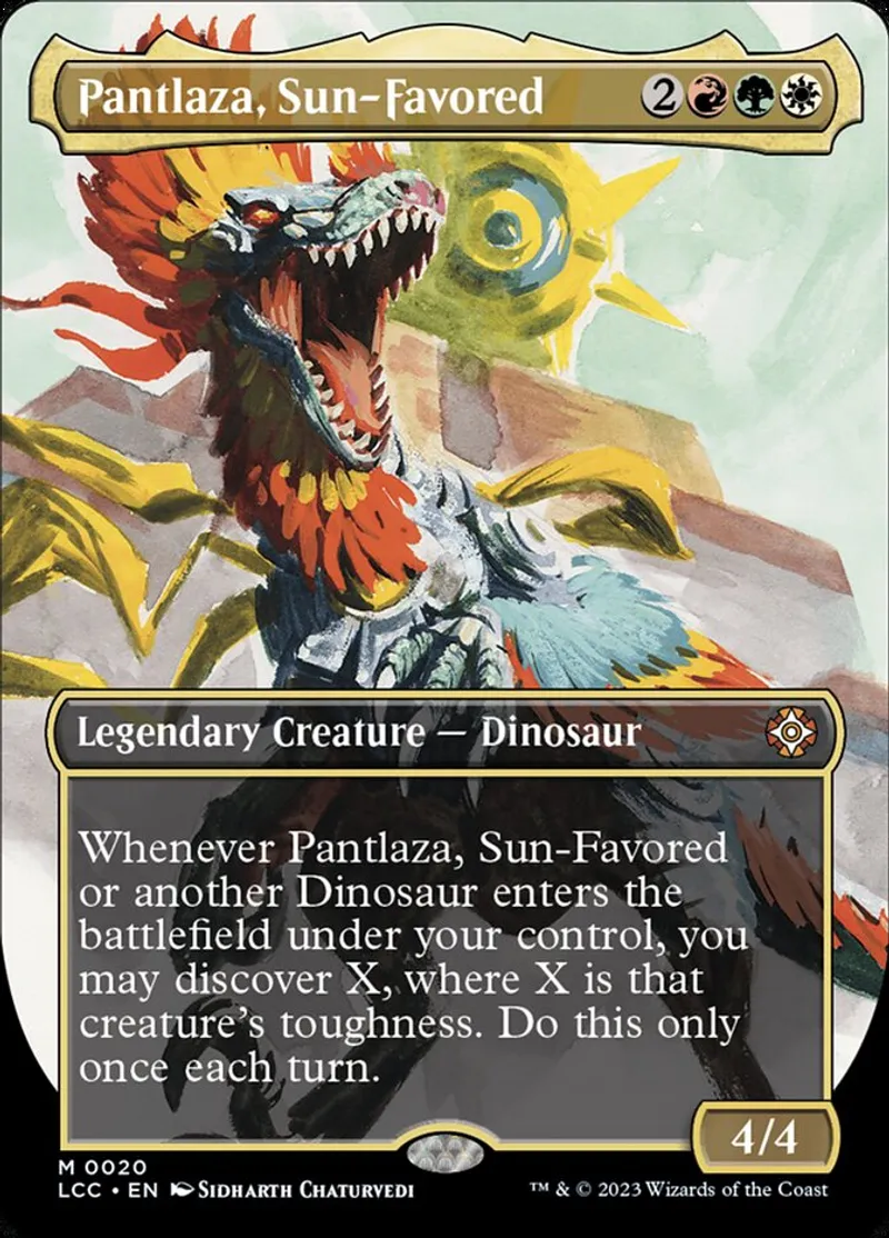 Magic: the Gathering (mtg) mythic Legendary Creature — Dinosaur Pantlaza, Sun-Favored from Lost Caverns of Ixalan Commander (lcc) last updated 2026-04-10 14:31:01