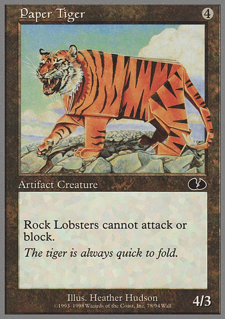 Magic: the Gathering (mtg) Common Artifact Creature Paper Tiger from Unglued (UGL) last updated 2026-01-31 15:09:36
