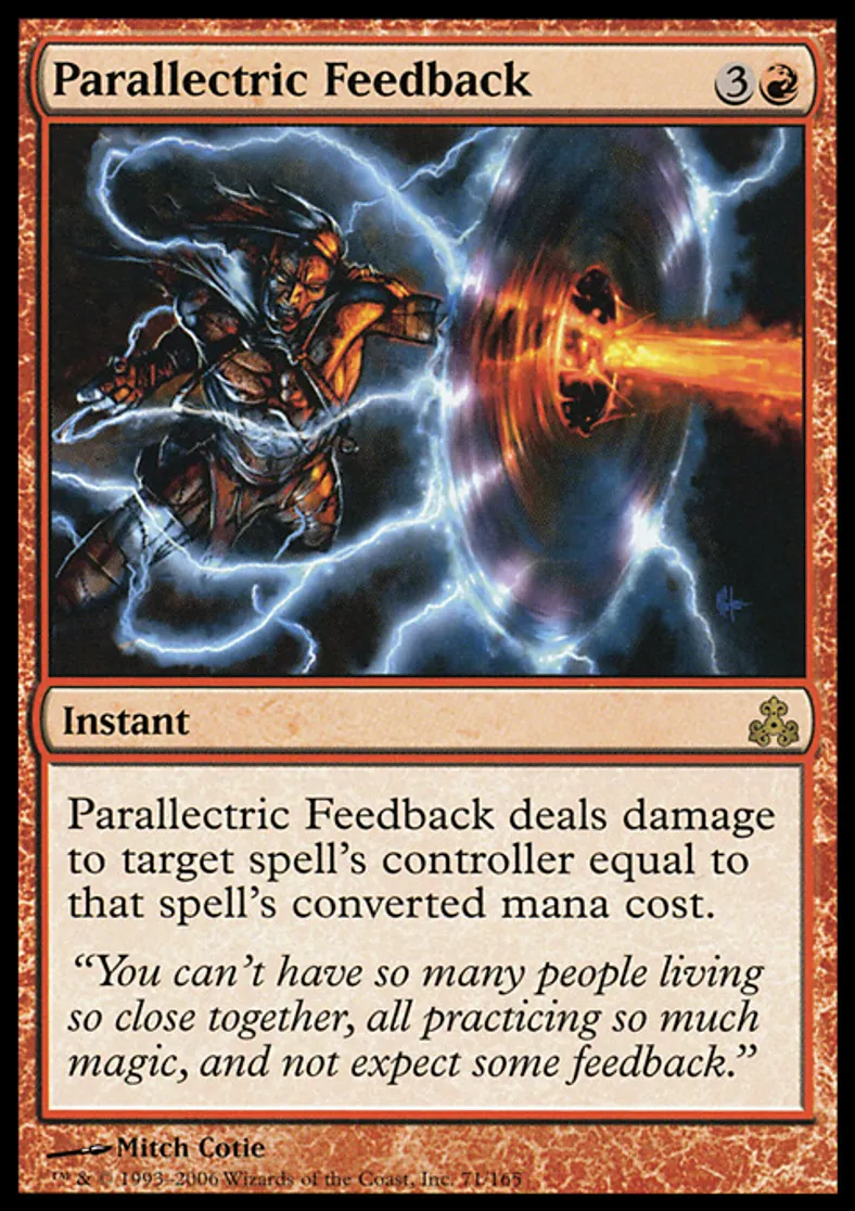 | Oracle Text | Parallectric Feedback deals damage to target spell's controller equal to that spell's converted mana cost. | ||