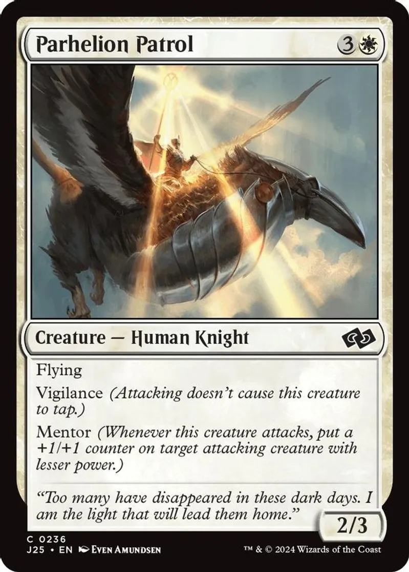 Parhelion Patrol is a Common in the set Foundations Jumpstart.