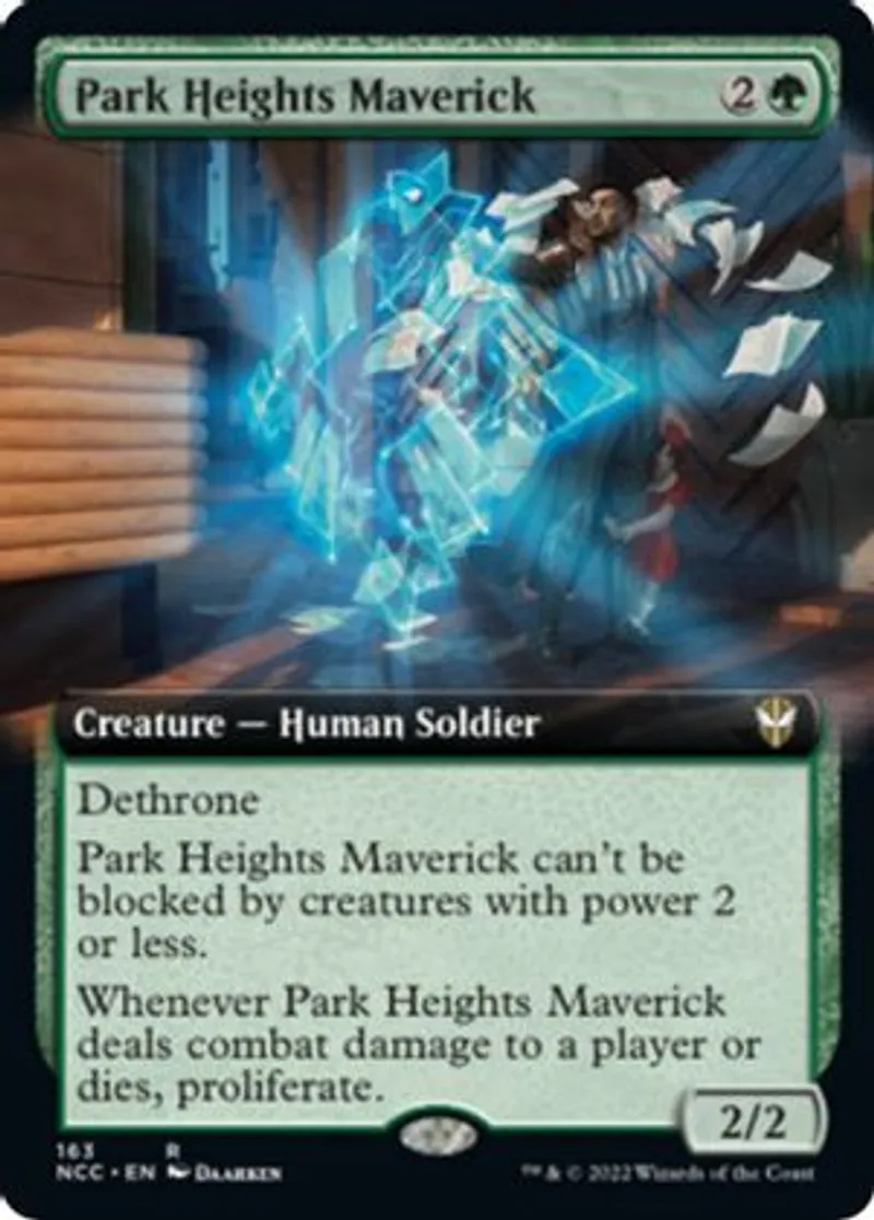 Park Heights Maverick (Extended Art) is a Rare in the set New Capenna Commander.