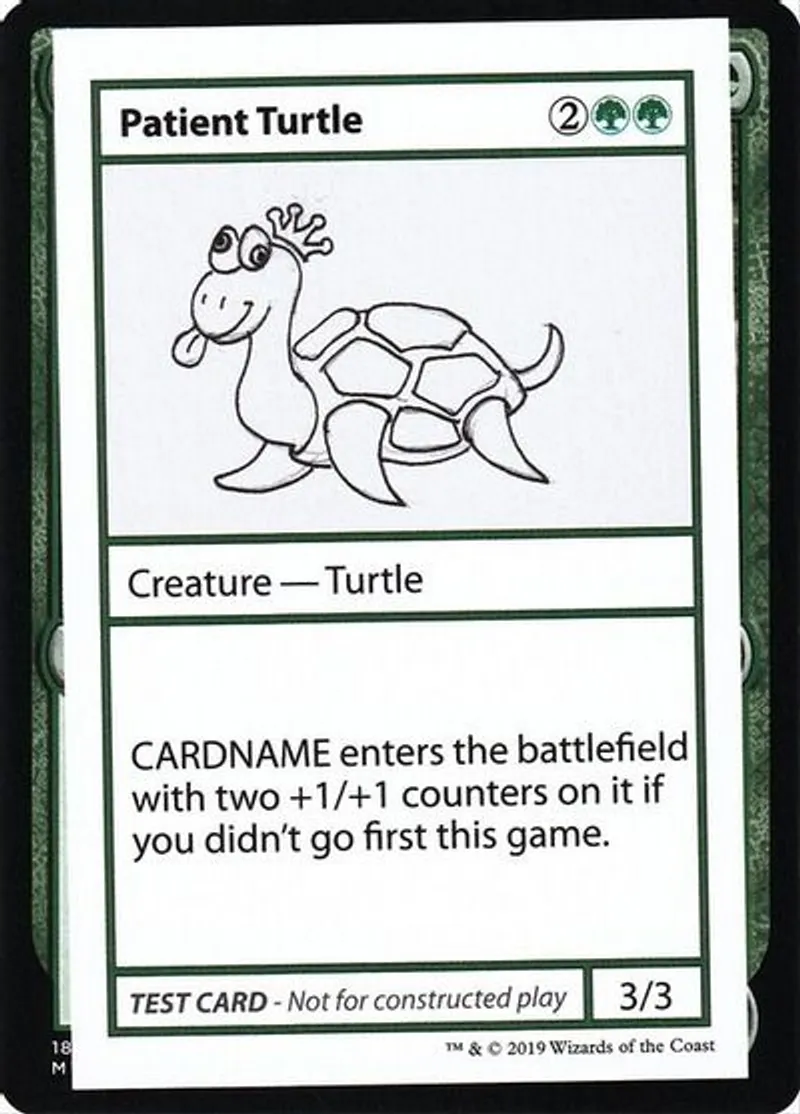 | Oracle Text | Patient Turtle enters the battlefield with two +1/+1 counters on it if you didn’t go first this game. | ||
