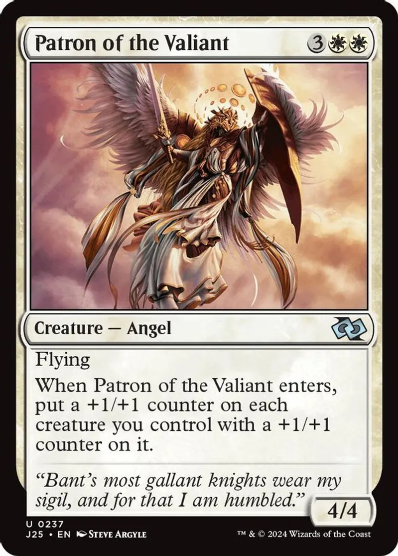 Magic: the Gathering (mtg) Uncommon creature — angel Patron of the Valiant from Foundations Jumpstart (J25) last updated 2026-02-21 15:34:02