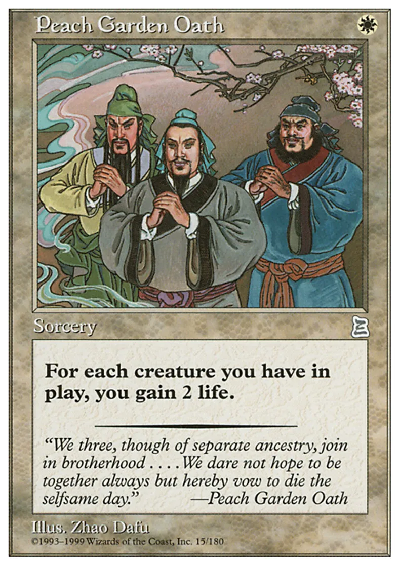 Magic: the Gathering (mtg) Uncommon Sorcery Peach Garden Oath from Portal Three Kingdoms (PTK) last updated 2026-02-24 14:44:33