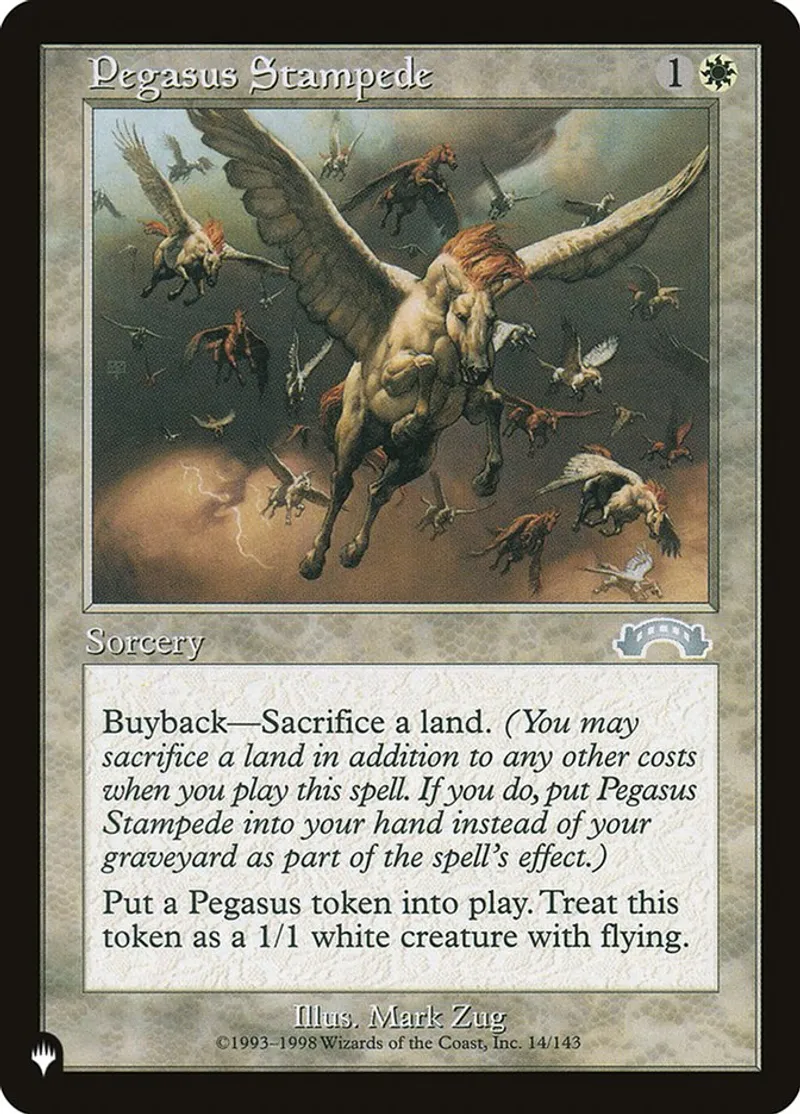 Magic: the Gathering (mtg) uncommon Sorcery Pegasus Stampede from The List (plist) last updated 2026-02-21 16:30:03