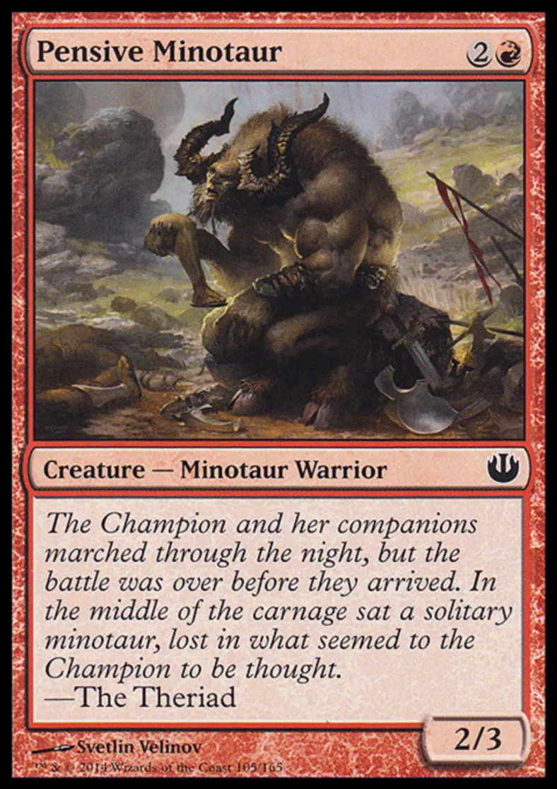 | Flavor Text | The Champion and her companions marched through the night, but the battle was over before they arrived. In the middle of the carnage sat a solitary minotaur, lost in what seemed to the Champion to be thought.—The Theriad | ||