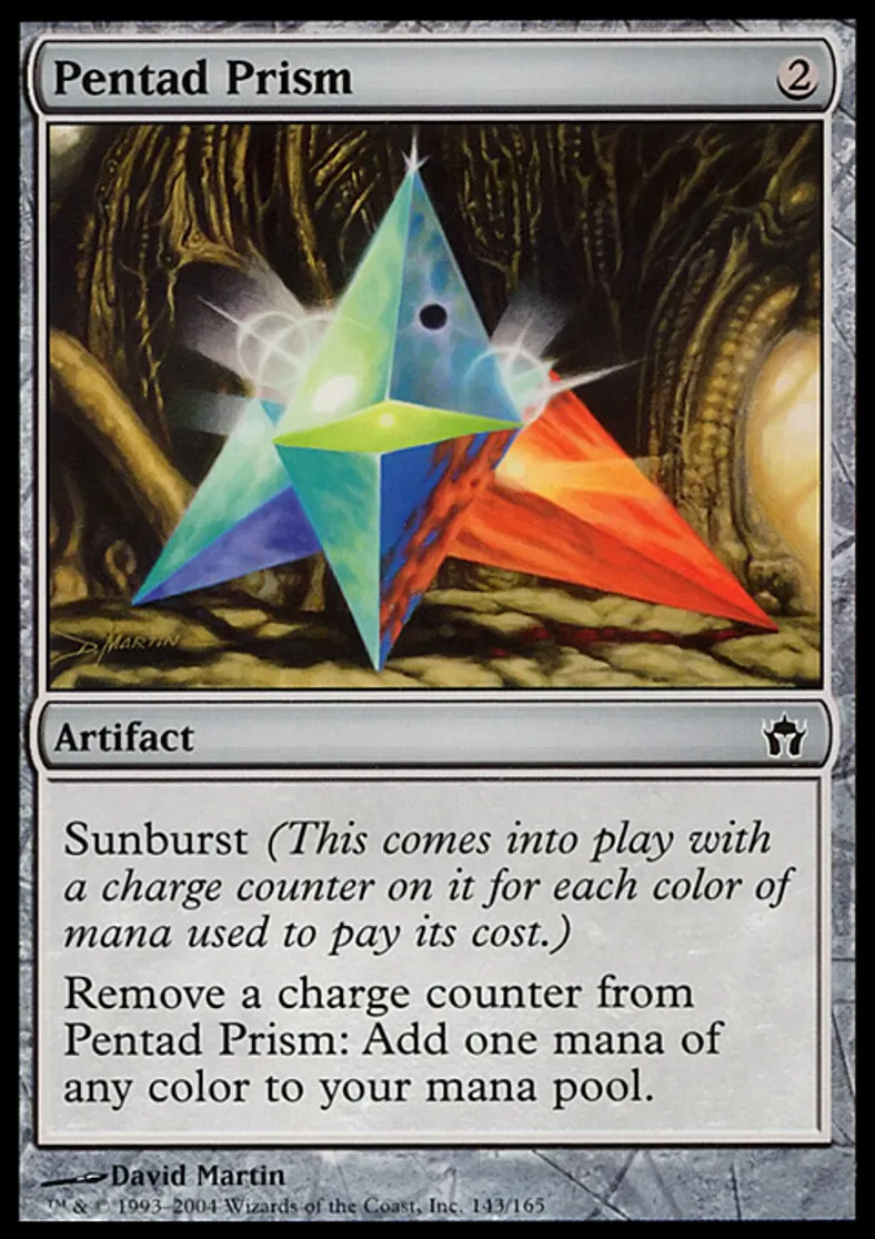 | Oracle Text | Sunburst (This enters the battlefield with a charge counter on it for each color of mana spent to cast it.) Remove a charge counter from Pentad Prism: Add one mana of any color to your mana pool. | ||