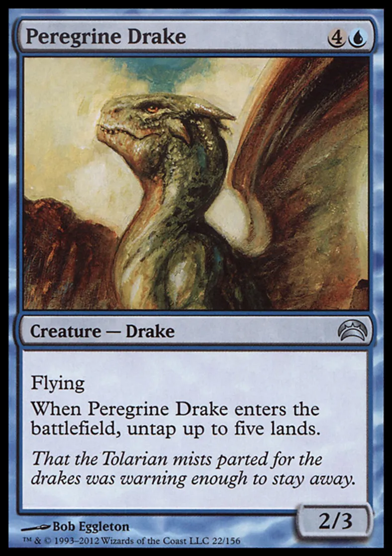 | Oracle Text | Flying When Peregrine Drake enters the battlefield, untap up to five lands. | ||