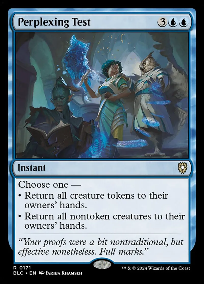 Magic: the Gathering (mtg) rare Instant Perplexing Test from Bloomburrow Commander (blc) last updated 2026-02-25 15:17:01