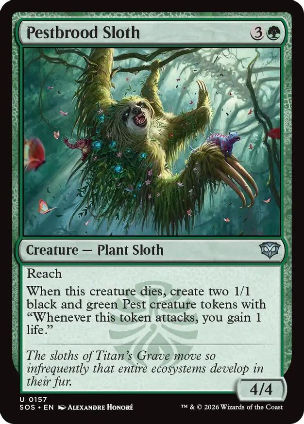Magic: the Gathering (mtg) Uncommon creature — plant sloth Pestbrood Sloth from Secrets of Strixhaven (SOS) last updated 2026-04-16 23:17:36