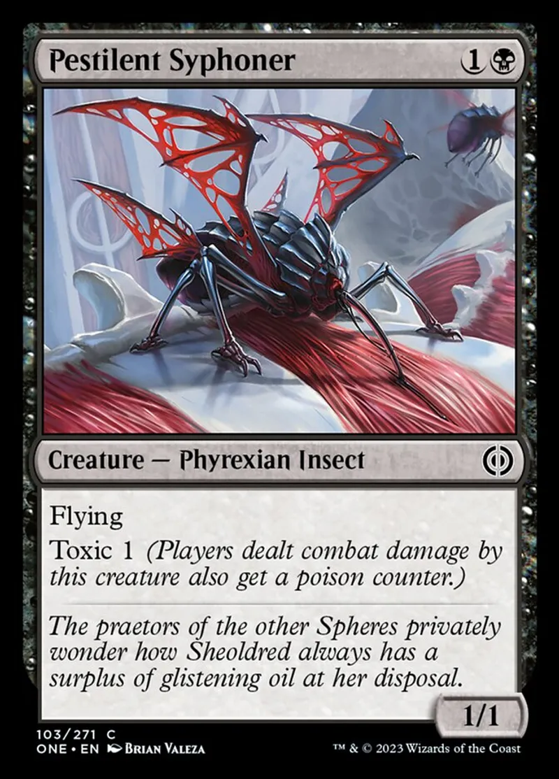 Magic: the Gathering (mtg) common Creature — Phyrexian Insect Pestilent Syphoner from Phyrexia: All Will Be One (one) last updated 2026-02-21 16:20:32