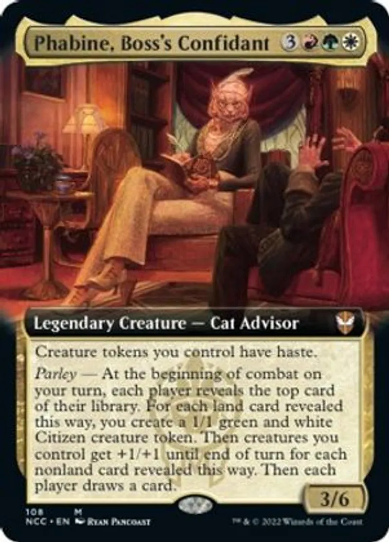 Phabine, Boss's Confidant (Extended Art) is a Mythic Rare in the set New Capenna Commander.