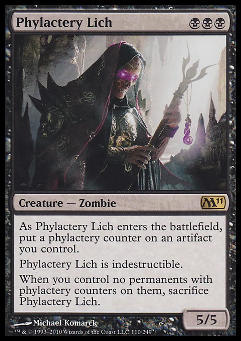 Magic: the Gathering (mtg) Rare Creature - Zombie Phylactery Lich from Magic 2011 (M11) last updated 2026-02-21 17:49:32