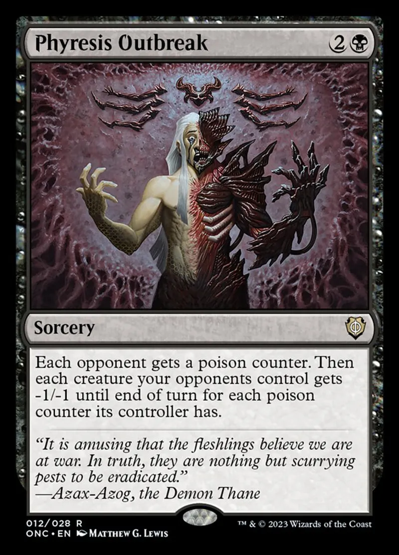 Magic: the Gathering (mtg) rare Sorcery Phyresis Outbreak from Phyrexia: All Will Be One Commander (onc) last updated 2026-02-24 14:26:32
