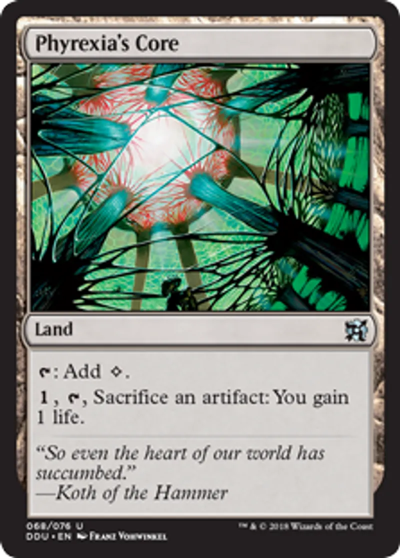 Magic: the Gathering (mtg) Uncommon Land Phyrexia's Core from Duel Decks: Elves vs. Inventors (DDU) last updated 2026-02-21 16:50:36