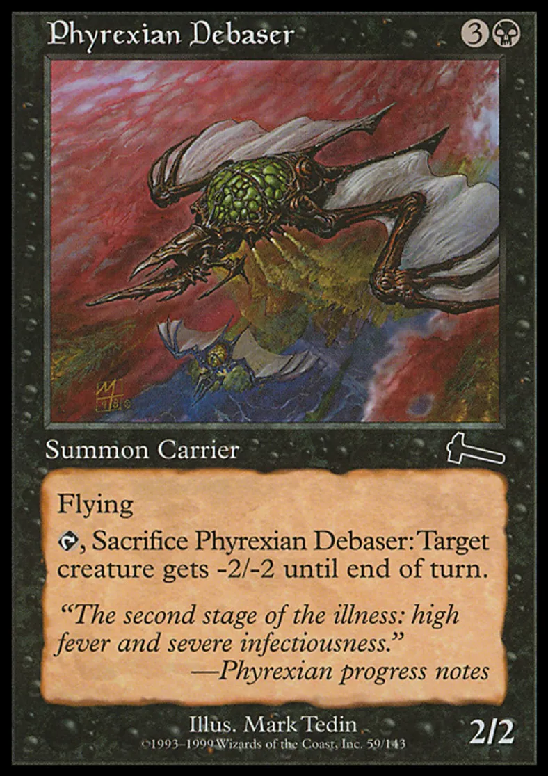 | Oracle Text | Flying {{t}}, Sacrifice Phyrexian Debaser: Target creature gets -2/-2 until end of turn. | ||