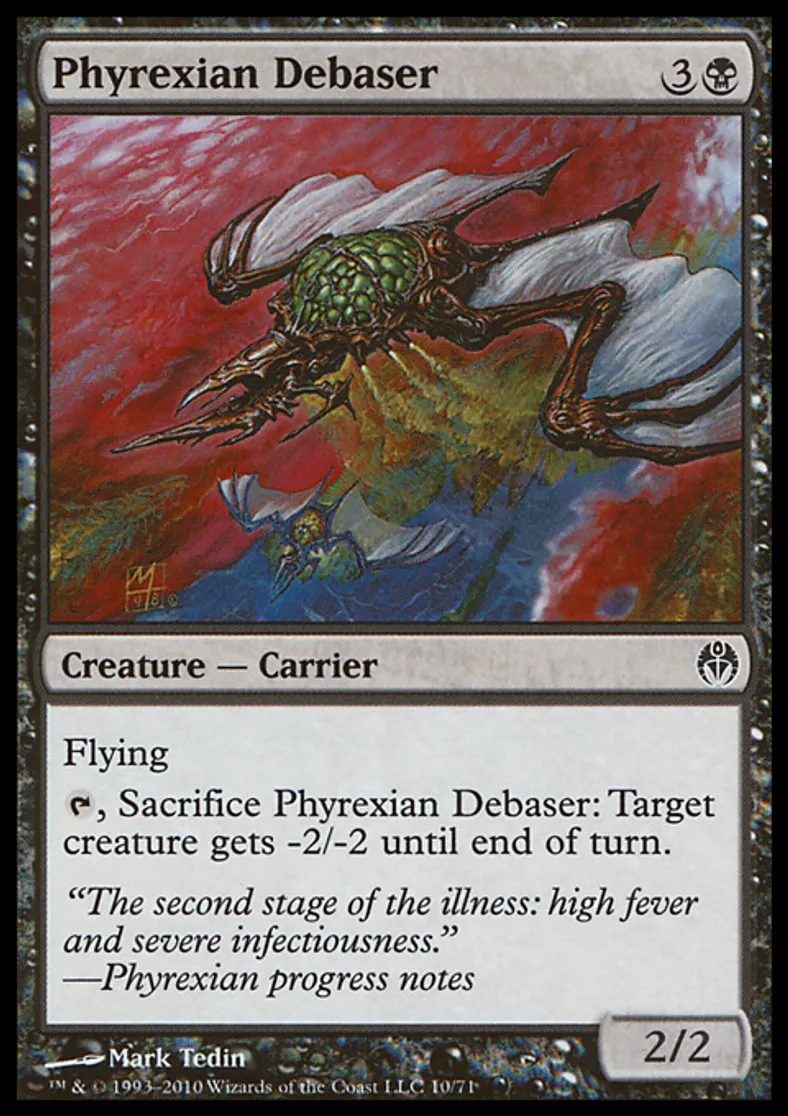 | Oracle Text | Flying {{t}}, Sacrifice Phyrexian Debaser: Target creature gets -2/-2 until end of turn. | ||