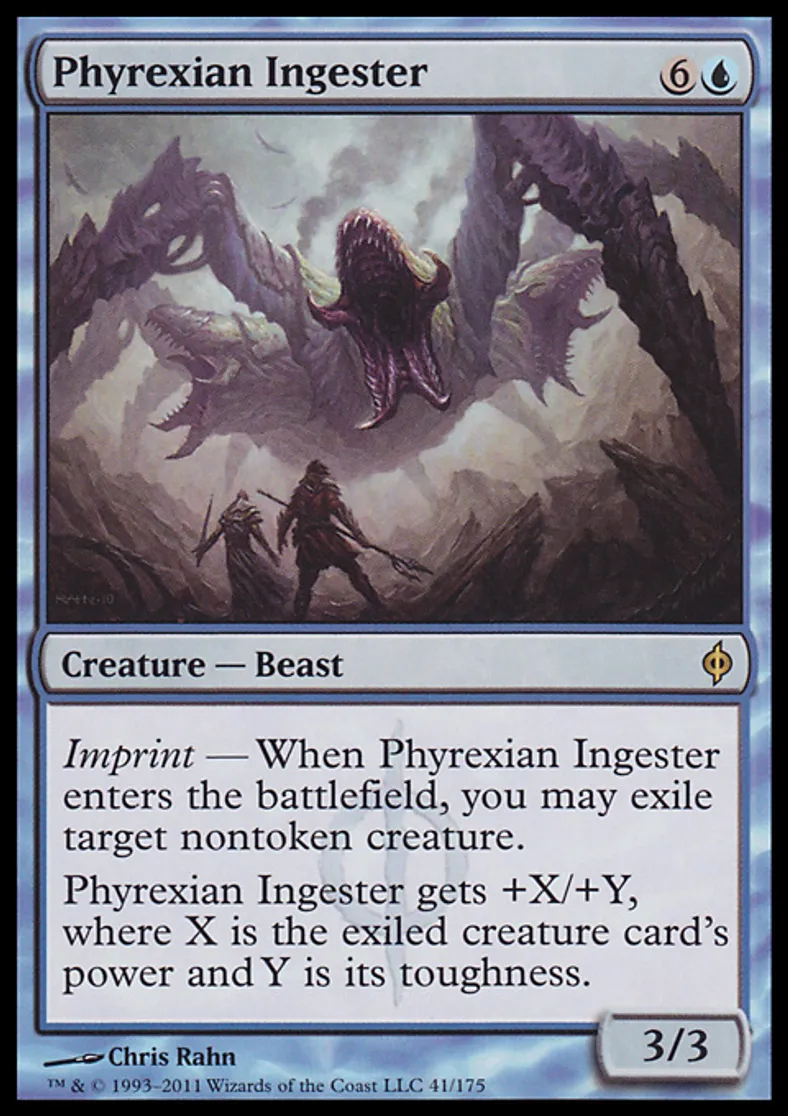 | Oracle Text | Imprint — When Phyrexian Ingester enters the battlefield, you may exile target nontoken creature. Phyrexian Ingester gets +X/+Y, where X is the exiled creature card's power and Y is its toughness. | ||