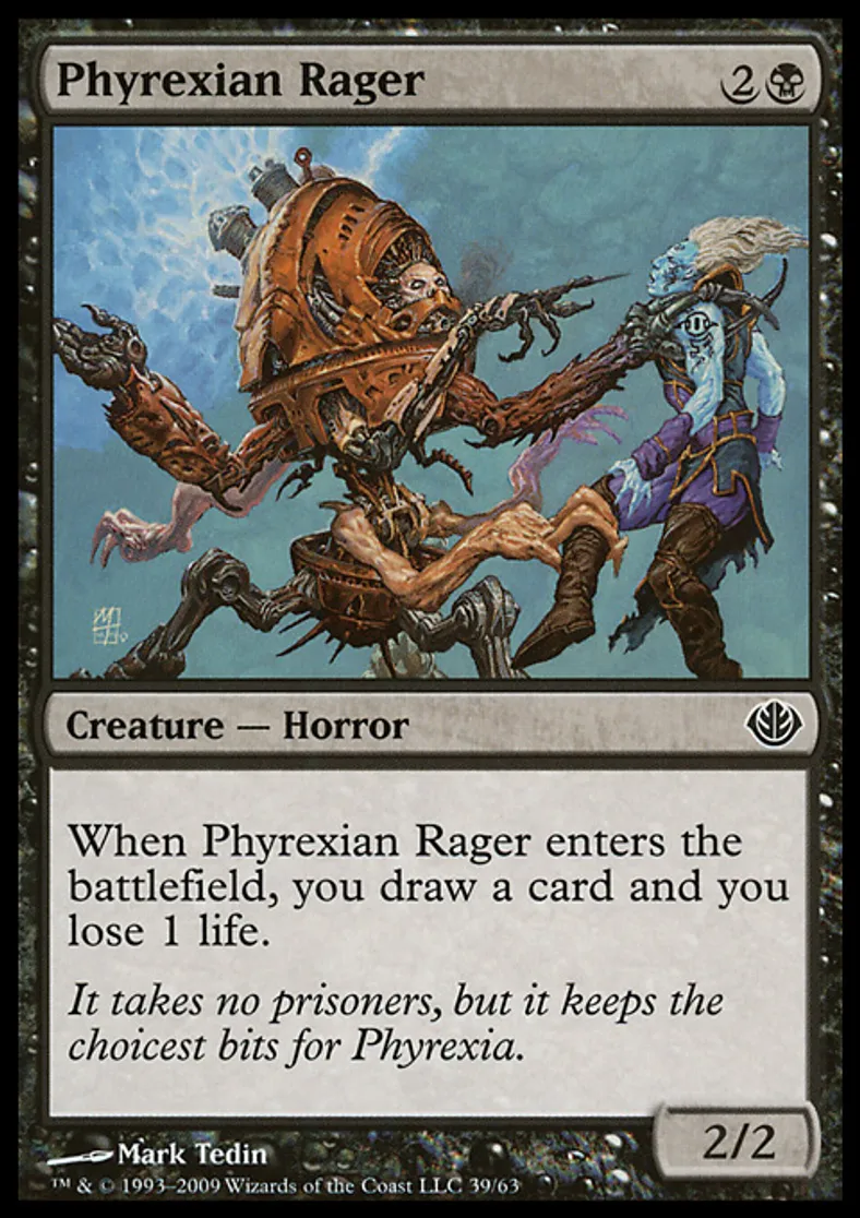 | Oracle Text | When Phyrexian Rager enters the battlefield, you draw a card and you lose 1 life. | ||