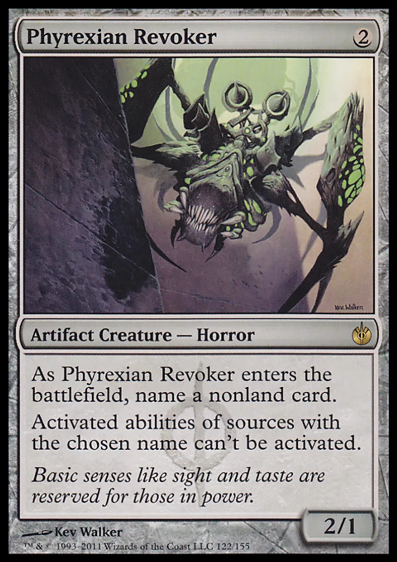 | Oracle Text | As Phyrexian Revoker enters the battlefield, name a nonland card. Activated abilities of sources with the chosen name can't be activated. | ||