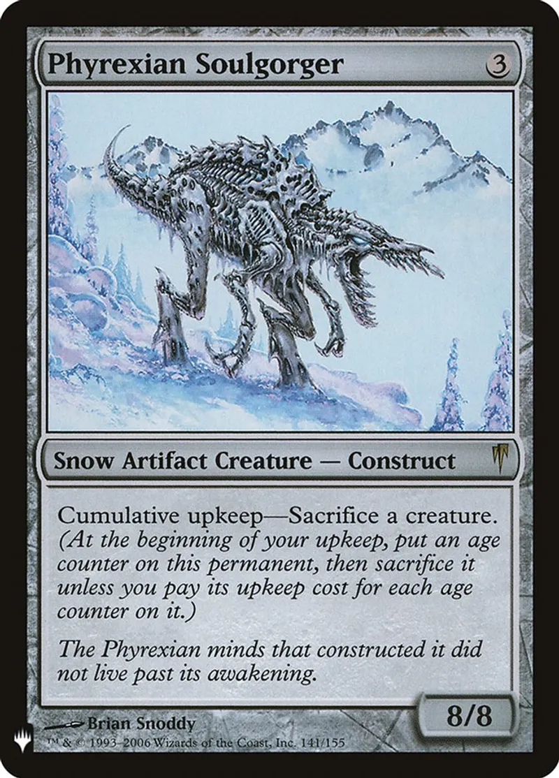 Magic: the Gathering (mtg) rare Snow Artifact Creature — Construct Phyrexian Soulgorger from Mystery Booster (mb1) last updated 2026-02-24 14:30:33