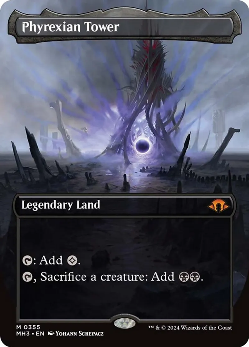 Phyrexian Tower (Borderless) is a mythic in the set Modern Horizons 3.
