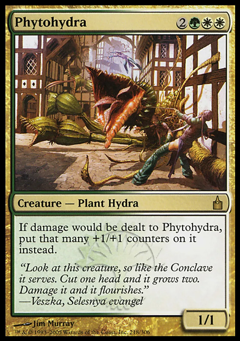 | Oracle Text | If damage would be dealt to Phytohydra, put that many +1/+1 counters on it instead. | ||