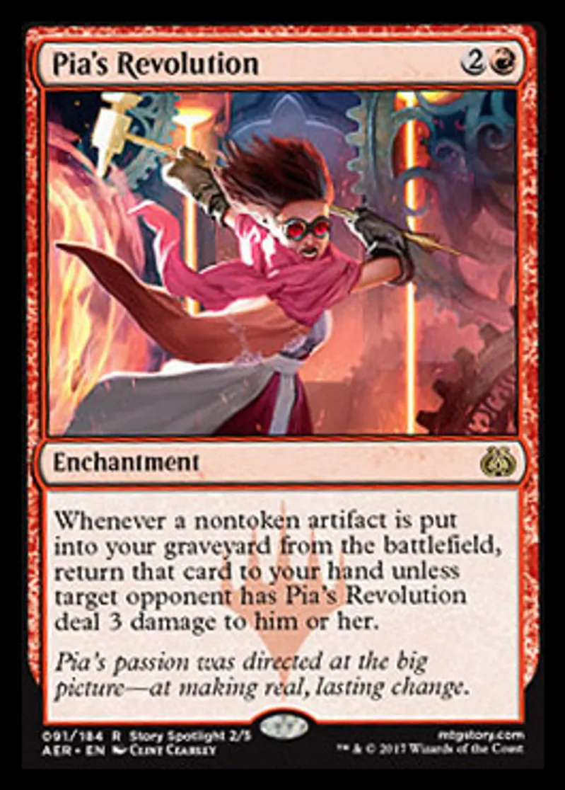 Magic: the Gathering (mtg) Rare Enchantment Pia's Revolution from Aether Revolt (AER) last updated 2026-02-21 17:27:36
