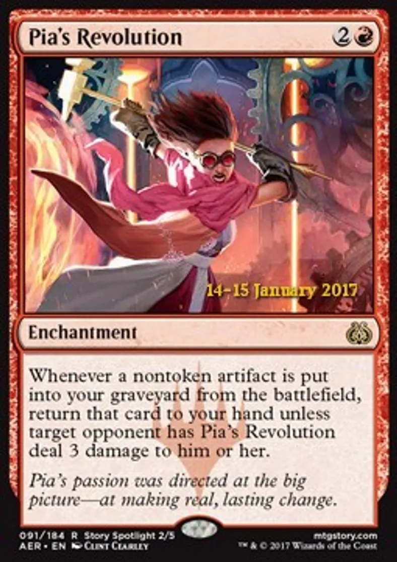 Magic: the Gathering (mtg) Rare Enchantment Pia's Revolution from Prerelease Cards (pPRE) last updated 2026-02-21 17:27:36