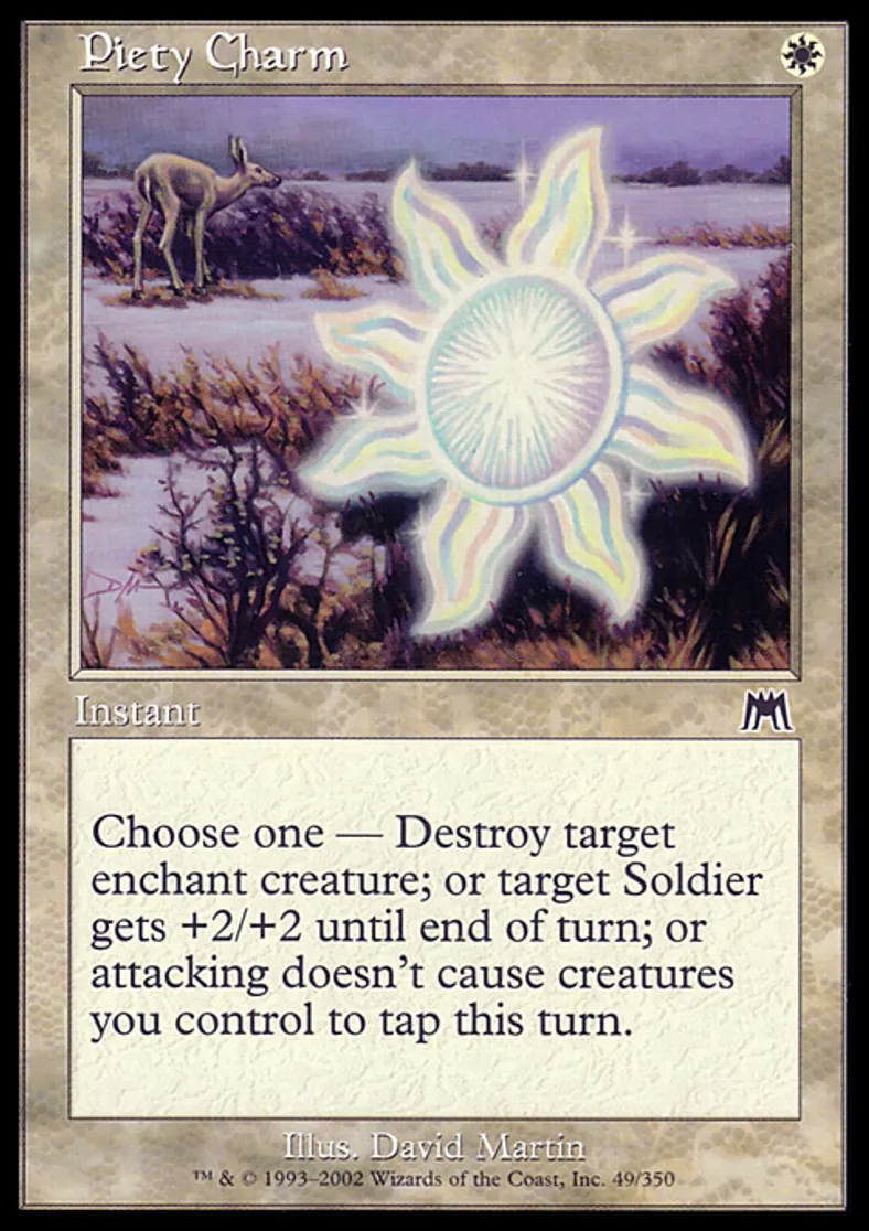 Magic: the Gathering (mtg) Common Instant Piety Charm from Onslaught (ONS) last updated 2026-02-25 15:51:38